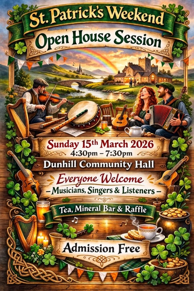 📍 Venue: Dunhill Community Hall (Halla Pobail Dún Aill)