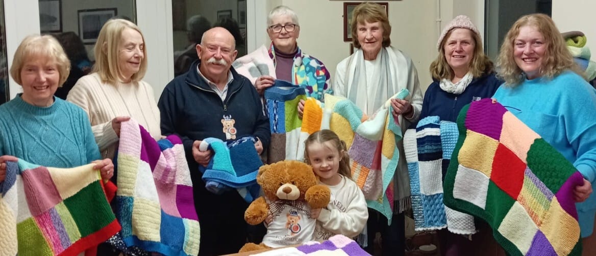 Joe Daly from Juniors and Juniors visited the Knitters and Knatters group at the Boatstrand Sea Safety Centre to collect 15 blankets lovingly made for children in University Hospital Waterford. In addition to the blankets for the children's ward, there were two blankets knitted for two children who hold a special place in some of the knitters' hearts. One went to a little girl in Boston and the other to Olivia in Portlaoise.