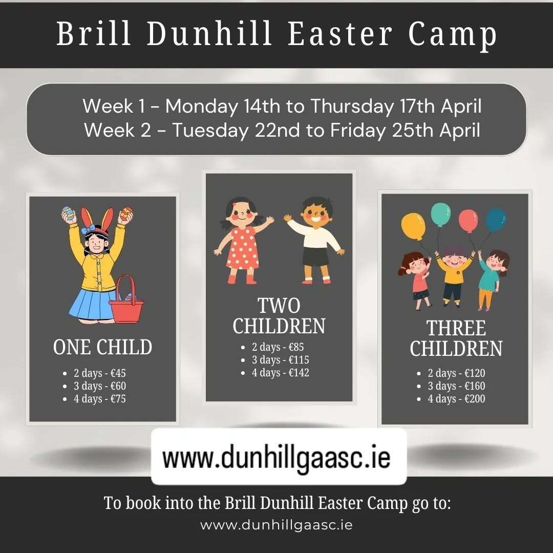 Don't forget to book into the Brill Dunhill Easter Camp now by going to www.dunhillgaasc.ie