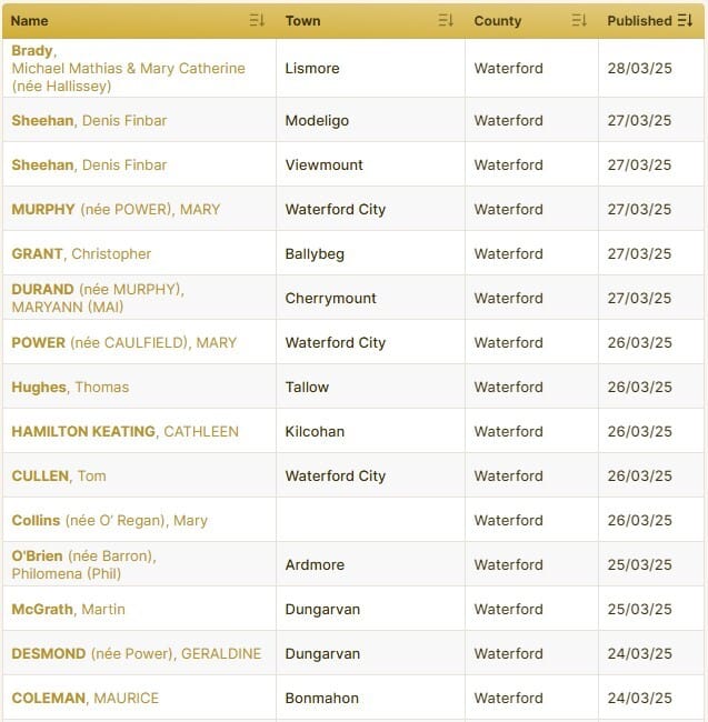 13 Apr (Sun) at 11.45am. Intermediate Hurling League Round 2. Dunhill vs Ardmore in Ardmore.
