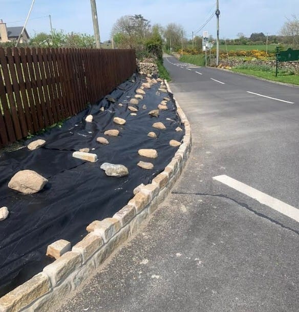 Many thanks to the team (Martin Murray, Joe Murray, John Drohan) that spent a day and a half cutting and laying out the rustic curbing at Ballinageeragh bend. It is now ready to plant up and this will happen over the next week or two. Any helping hand appreciated.