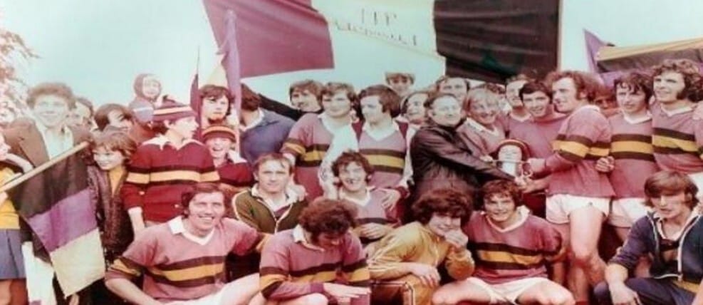 Dunhill swept to glory in the 1975 county football final in Fraher Field, Dungarvan, when their super-fit team overcame red-hot favourites Tramore to win their first ever senior football championship. Some of the most emotional scenes ever witnessed in Dungarvan were to be seen as hundreds of Dunhill supporters took over the sidelines with five minutes left in the game. The final minutes were played out amid absolute chaos as the first senior football championship in the club’s history was about to be won. The excitement after the game had to be seen to be believed as red, black, and yellow flags of Dunhill were waved aloft in triumph, with no one in any hurry to leave the pitch. Old and young, men and women shed tears unashamedly as they lived that moment generations of club men and women had been waiting for since 1890.